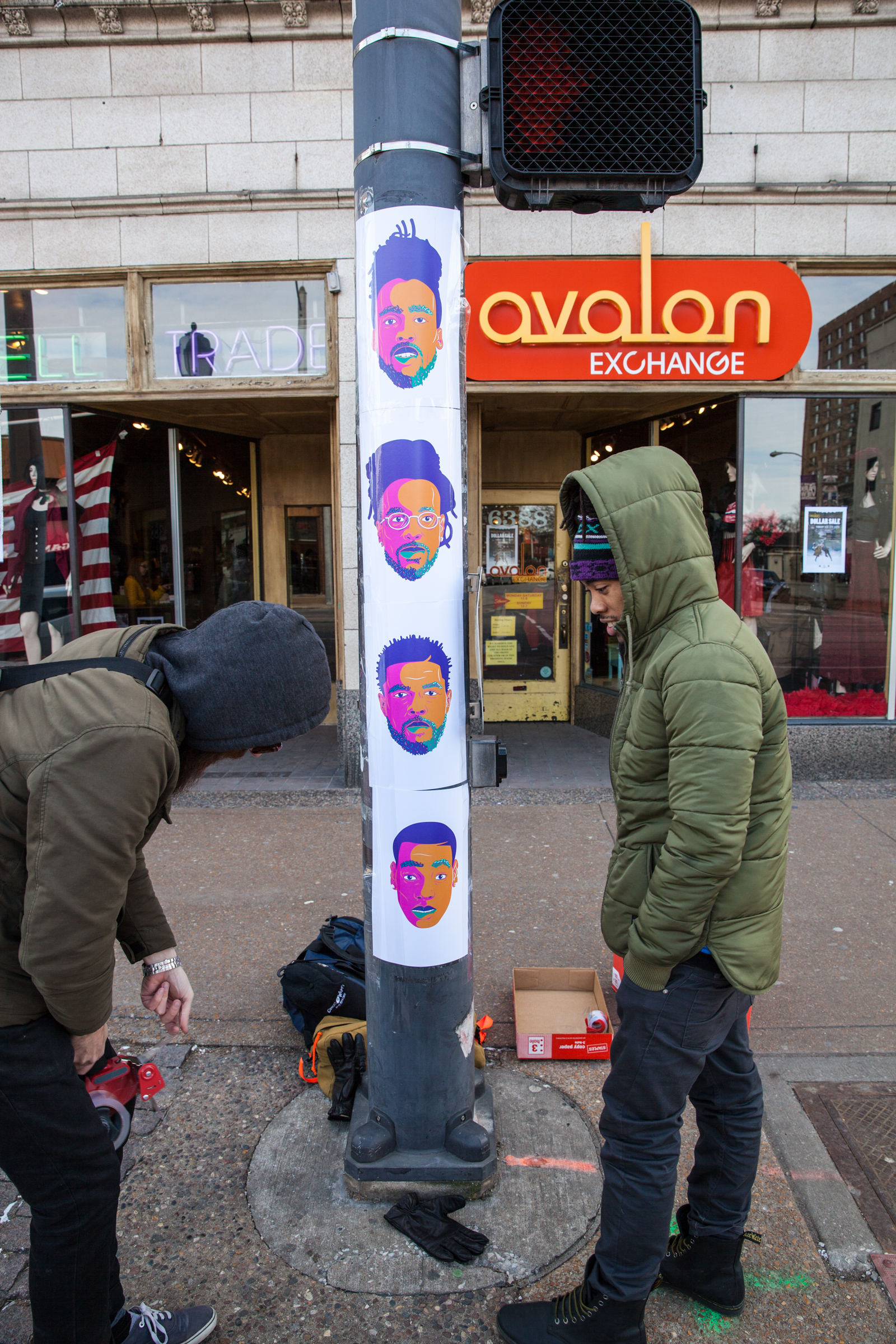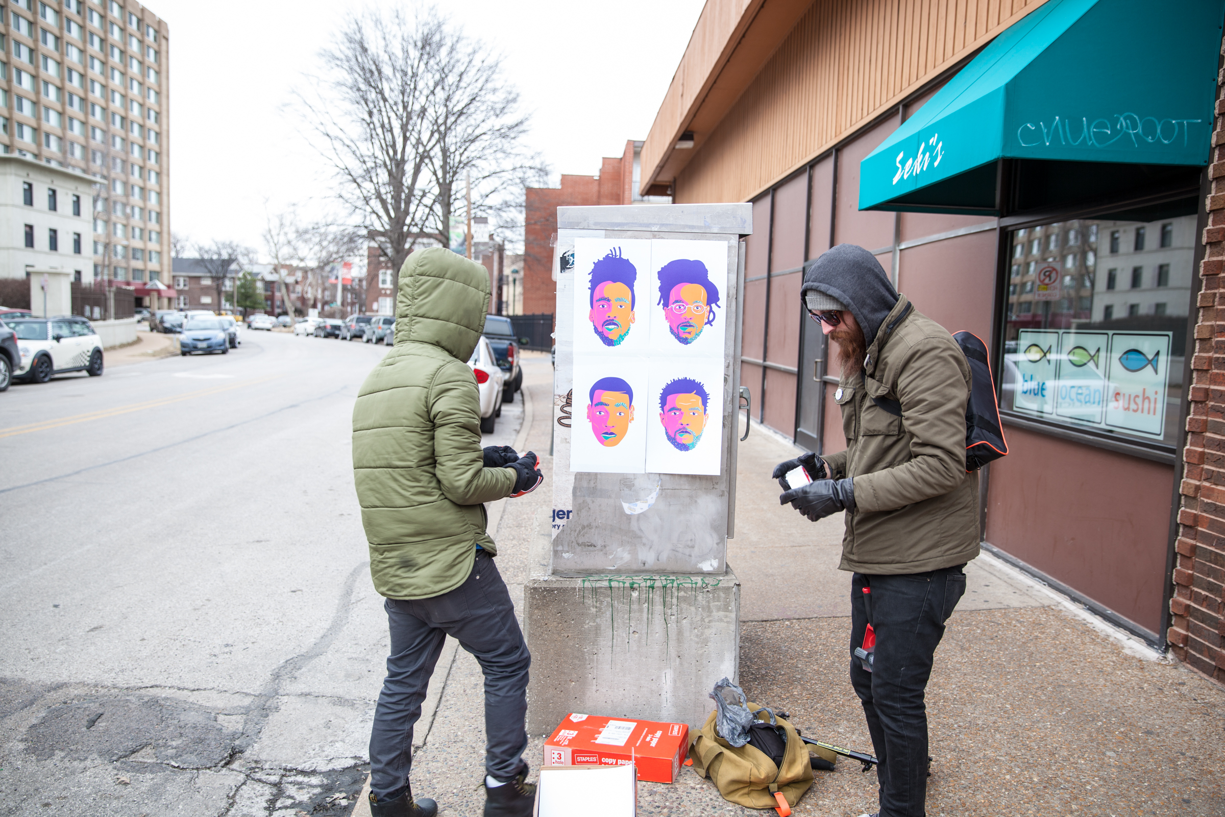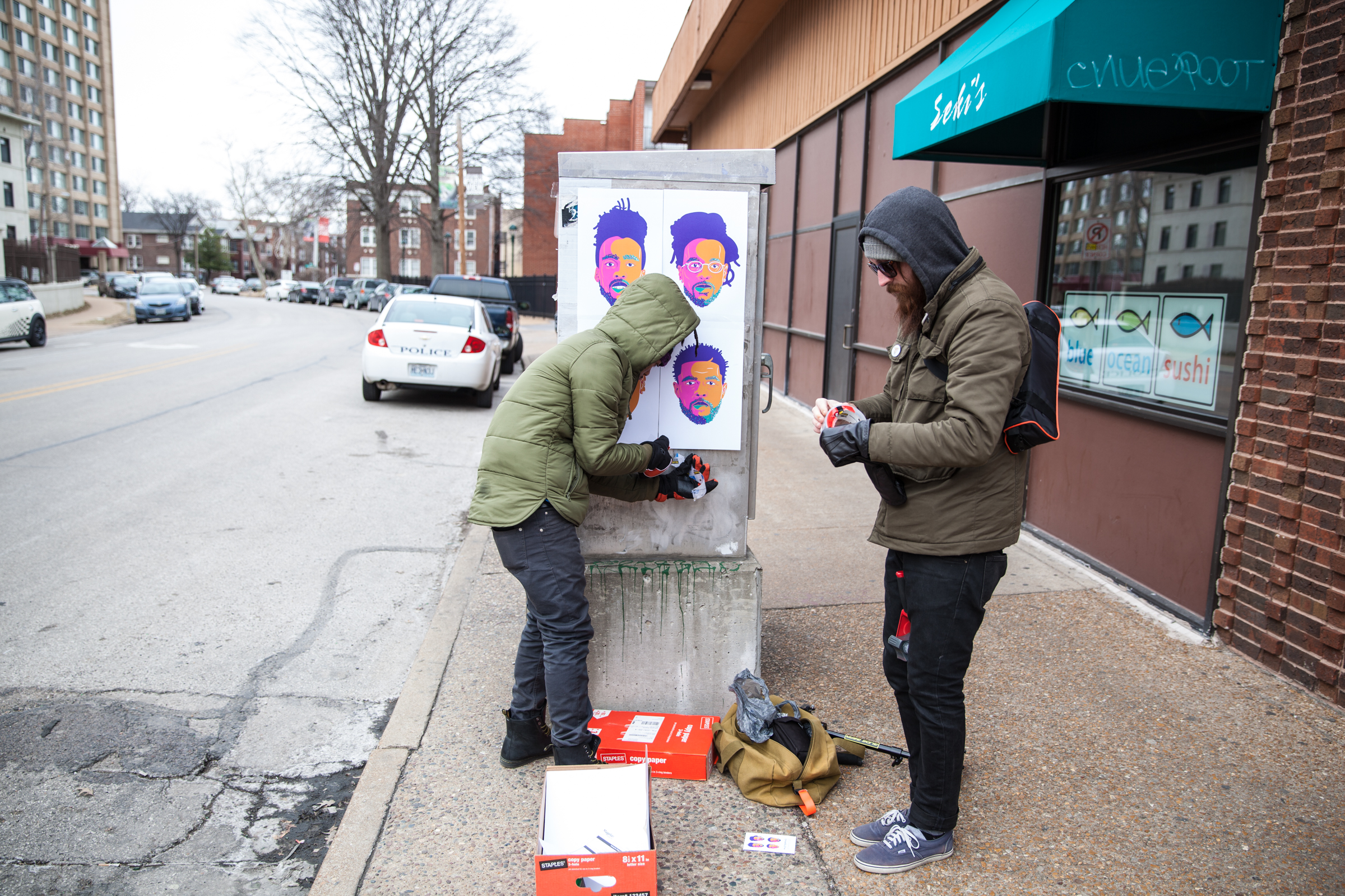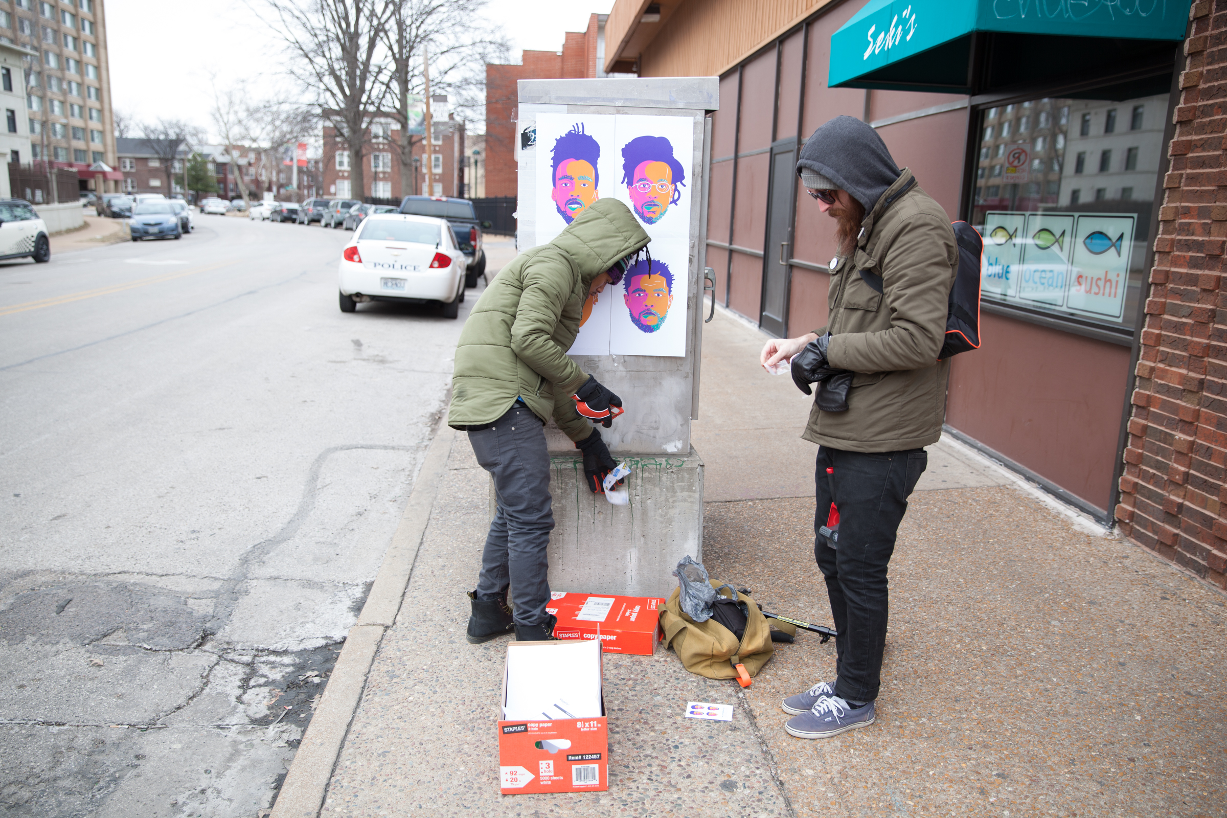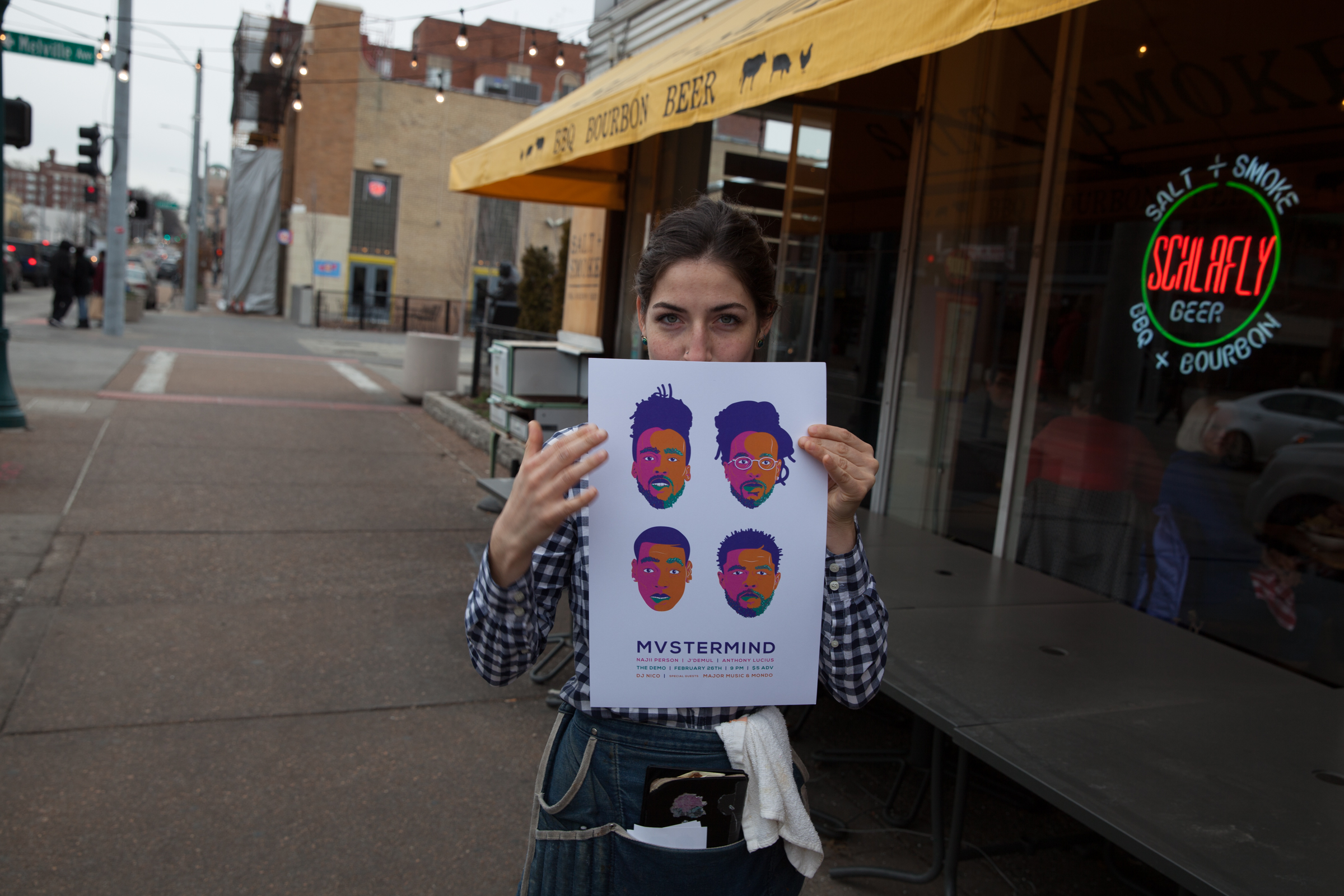 When the primary objective of a project is to simply help others, the outcome of such efforts are limitless. With an emphasis on the creative mind, Exist Magazine set out to document an unlikely collaboration between some of Saint Louis’ finest hip-hop innovators and artist / designer Gregory Davis in a public art project to promote a show at The Demo on February 26th. You might have noticed the many faces posters hung up around Saint Louis. A grid of four faces in orange, pink, purple, and teel hung up from Saint Louis Delmar Loop to South City Cherokee Street. The posters depict the cast for friday nights show starting with the headliner Mvstermind, along with Najii Person, J’Demul, and Anthony Lucius. Hanging up posters to promote a show is nothing new, but you may have noticed that these posters were a bit different. The posters were void of any information. The idea grew from a conversation about the abuse of information constantly bombarding the living world. The intention was to promote online, and have the public art to simply exist as art. Since the posters were hung they’ve taken on a life of their own. Fans have brought the project to greater heights by posting and tagging themselves in pictures via social media. Friday, February 26th will conclude the efforts to make a night that Saint Louis will never forget. The show starts at 9pm, and tickets are only $5 if you buy them in advance. We will see you there!