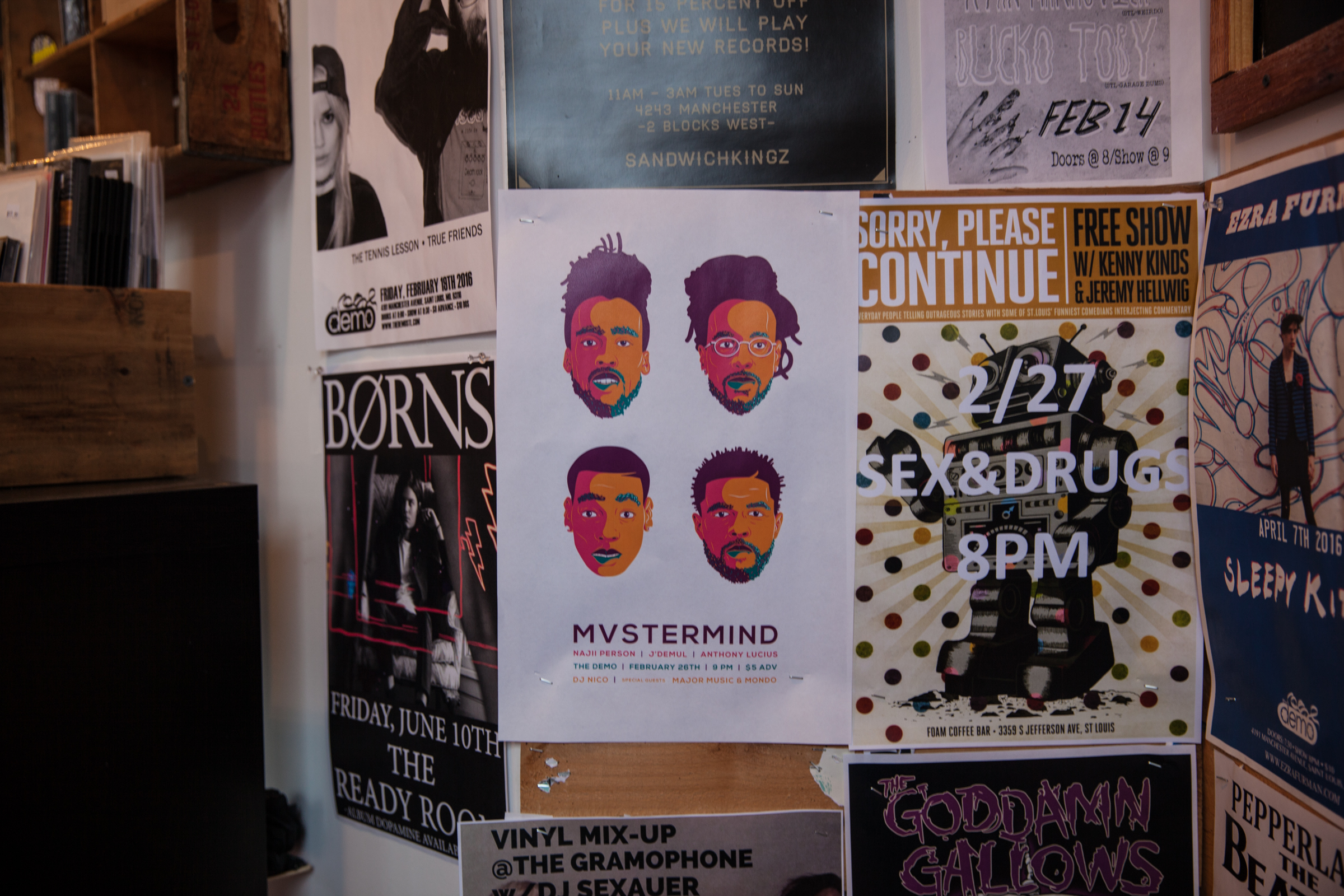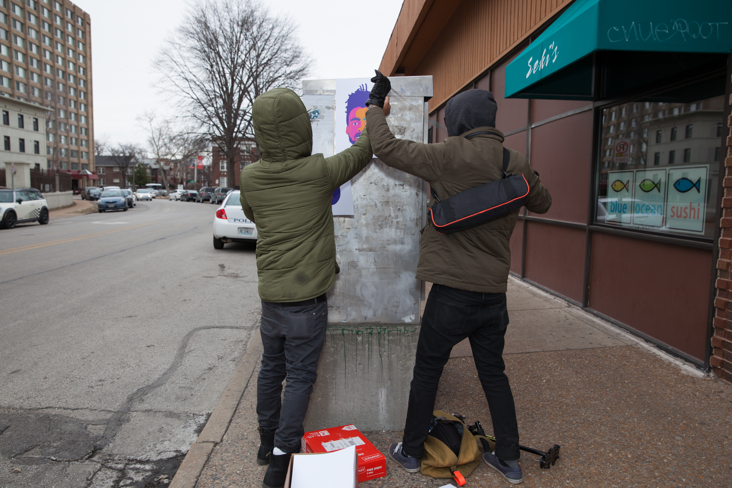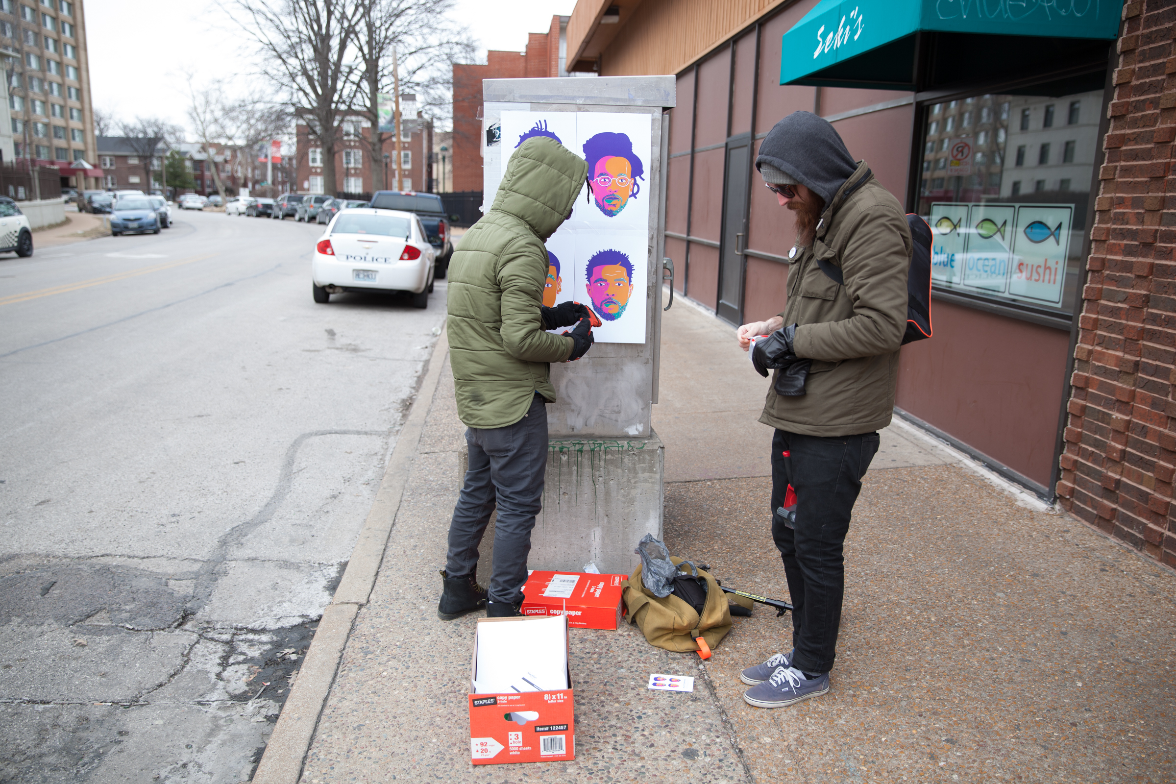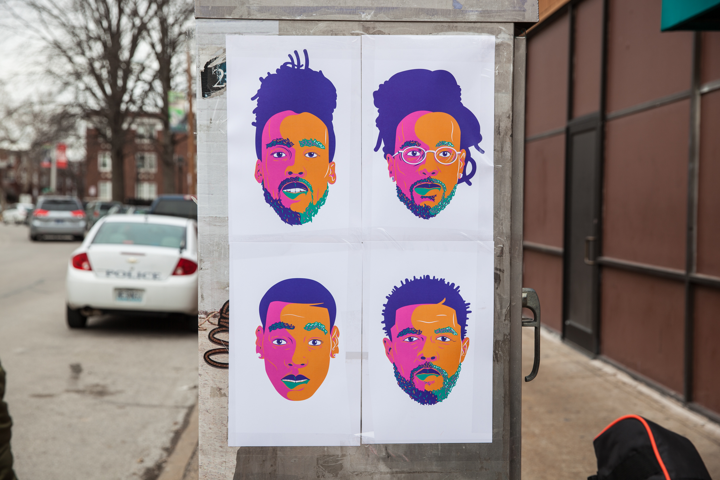 When the primary objective of a project is to simply help others, the outcome of such efforts are limitless. With an emphasis on the creative mind, Exist Magazine set out to document an unlikely collaboration between some of Saint Louis’ finest hip-hop innovators and artist / designer Gregory Davis in a public art project to promote a show at The Demo on February 26th. You might have noticed the many faces posters hung up around Saint Louis. A grid of four faces in orange, pink, purple, and teel hung up from Saint Louis Delmar Loop to South City Cherokee Street. The posters depict the cast for friday nights show starting with the headliner Mvstermind, along with Najii Person, J’Demul, and Anthony Lucius. Hanging up posters to promote a show is nothing new, but you may have noticed that these posters were a bit different. The posters were void of any information. The idea grew from a conversation about the abuse of information constantly bombarding the living world. The intention was to promote online, and have the public art to simply exist as art. Since the posters were hung they’ve taken on a life of their own. Fans have brought the project to greater heights by posting and tagging themselves in pictures via social media. Friday, February 26th will conclude the efforts to make a night that Saint Louis will never forget. The show starts at 9pm, and tickets are only $5 if you buy them in advance. We will see you there!