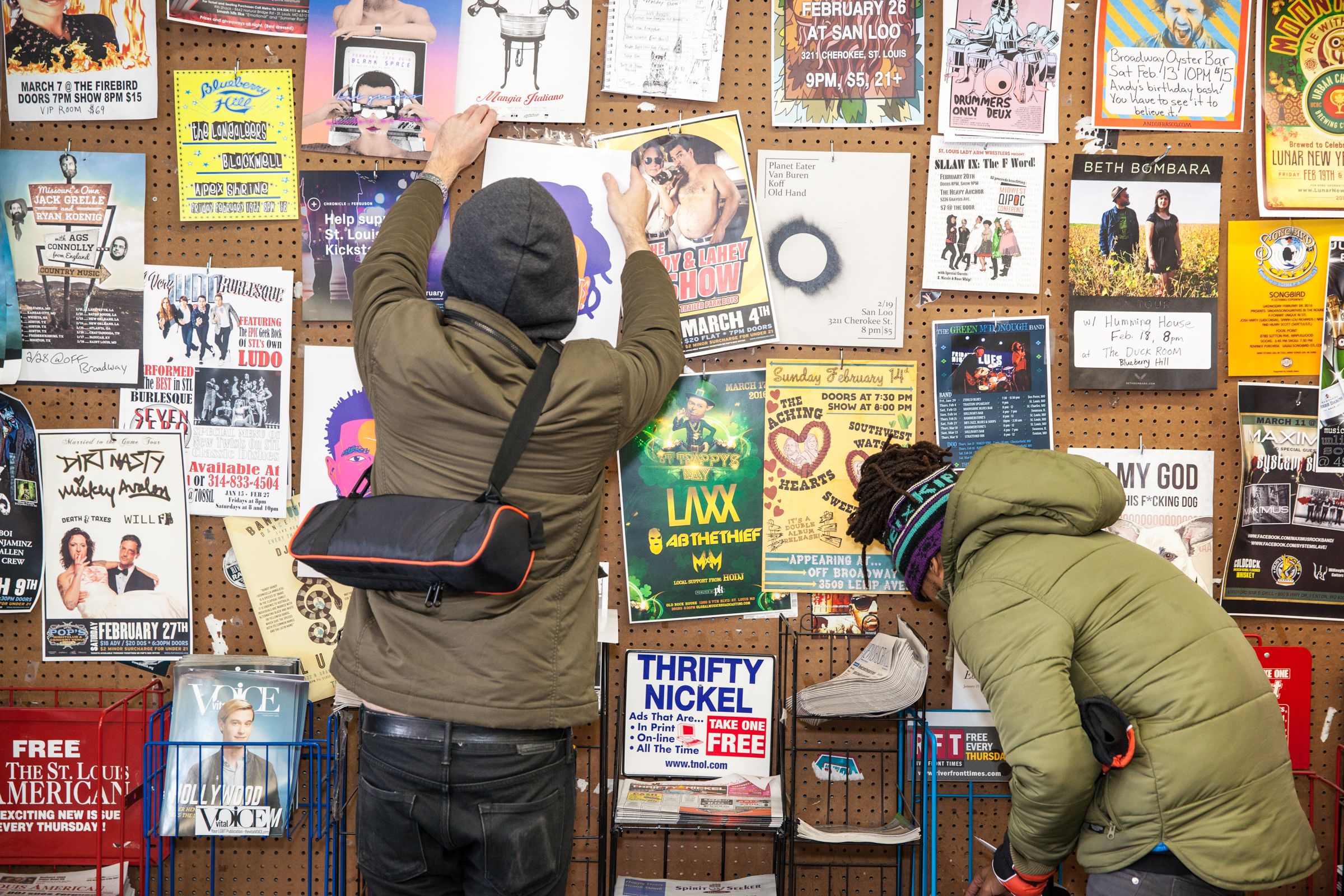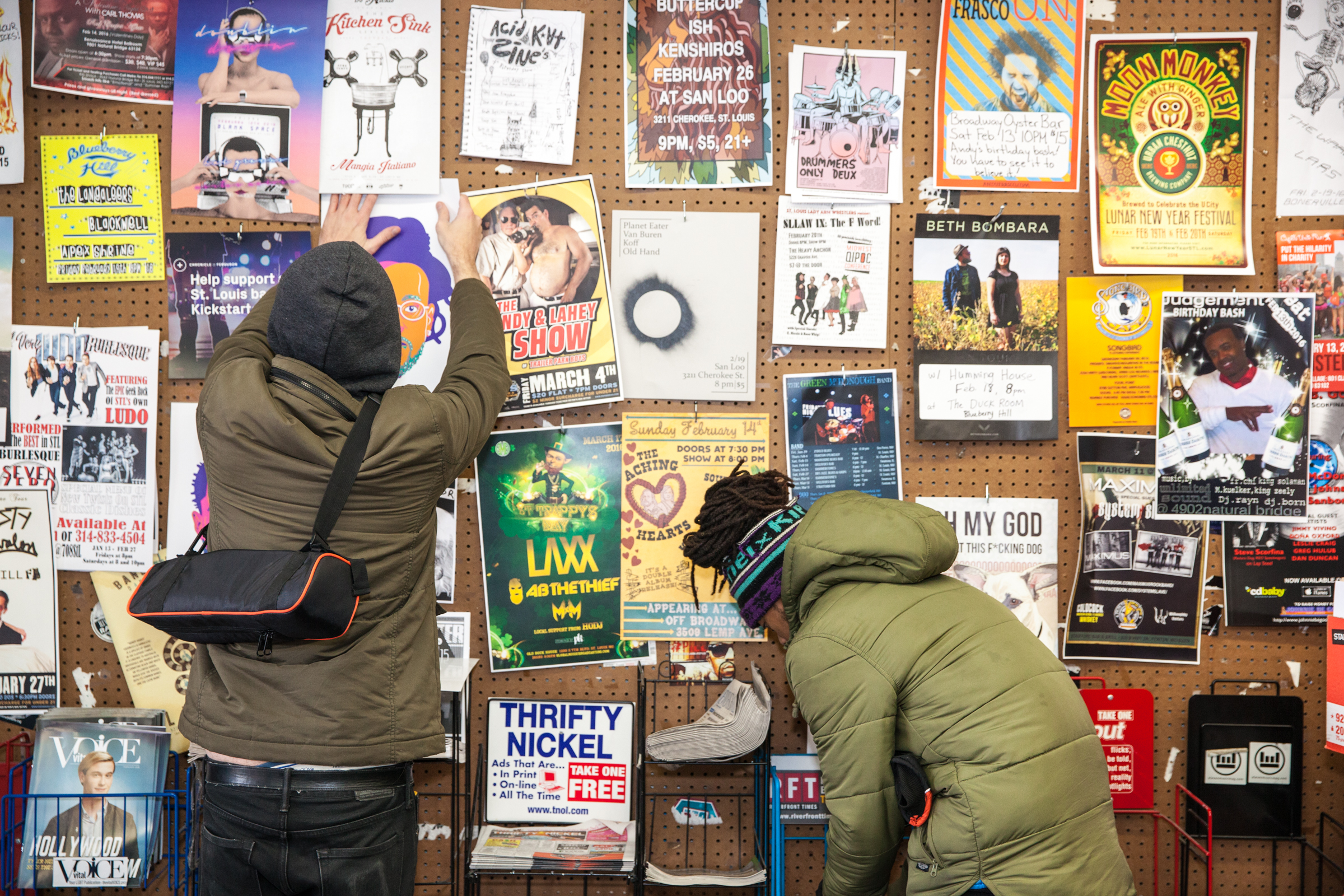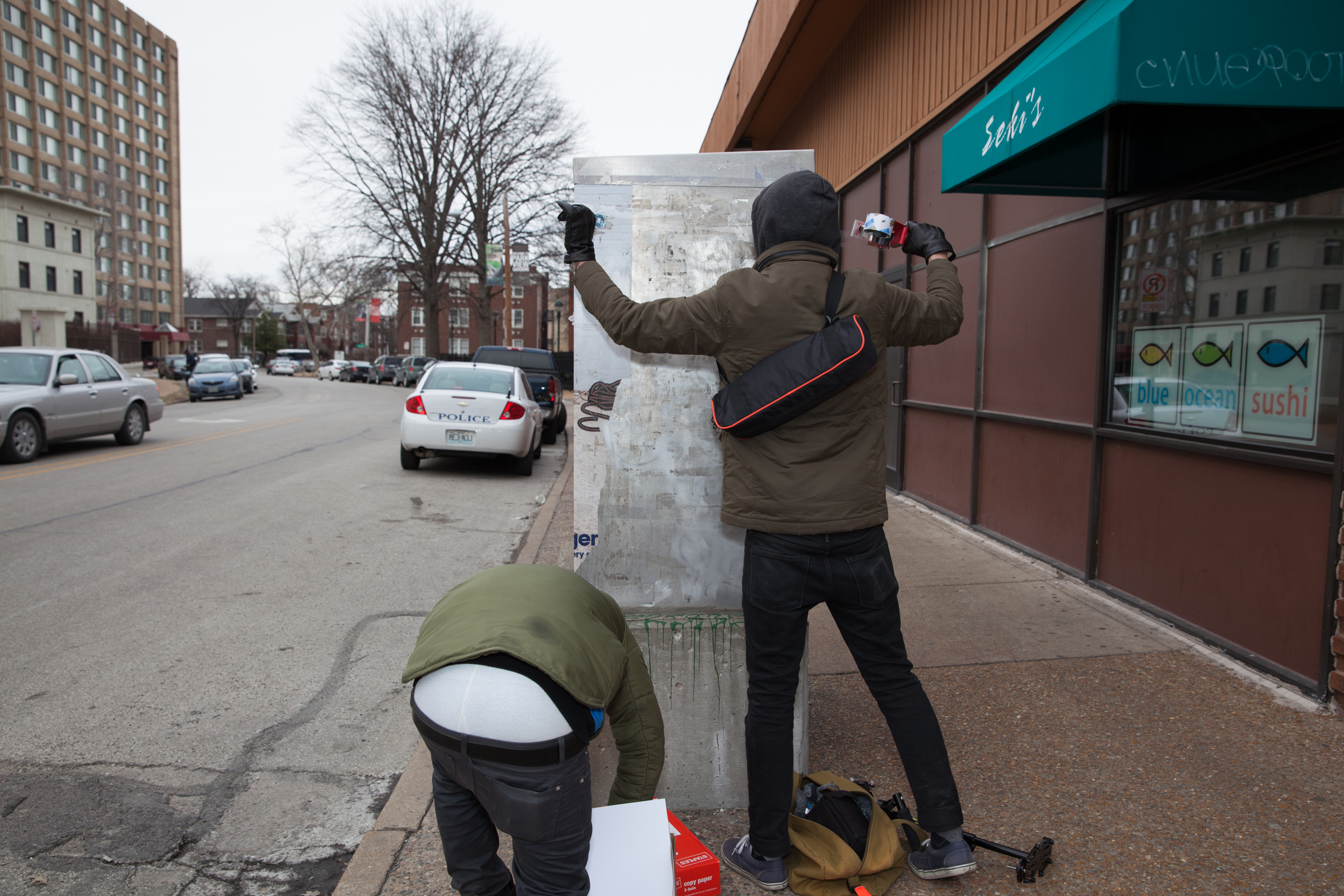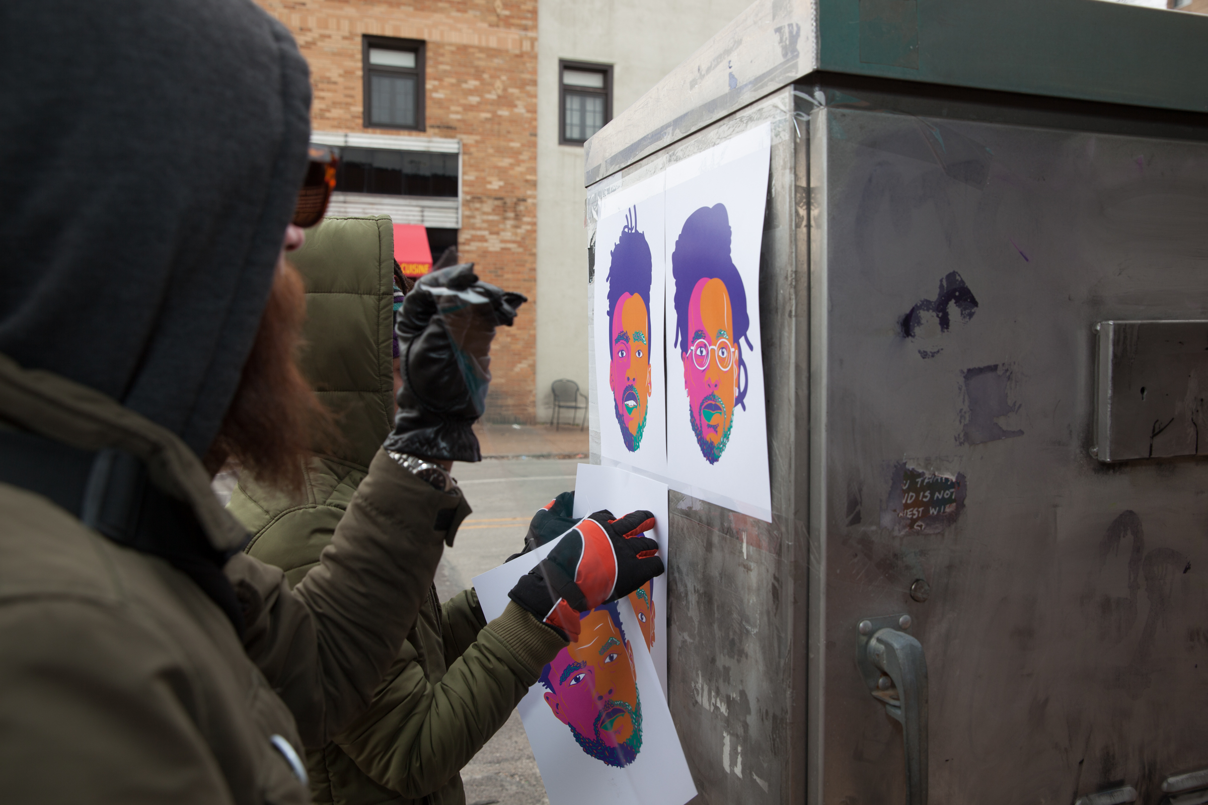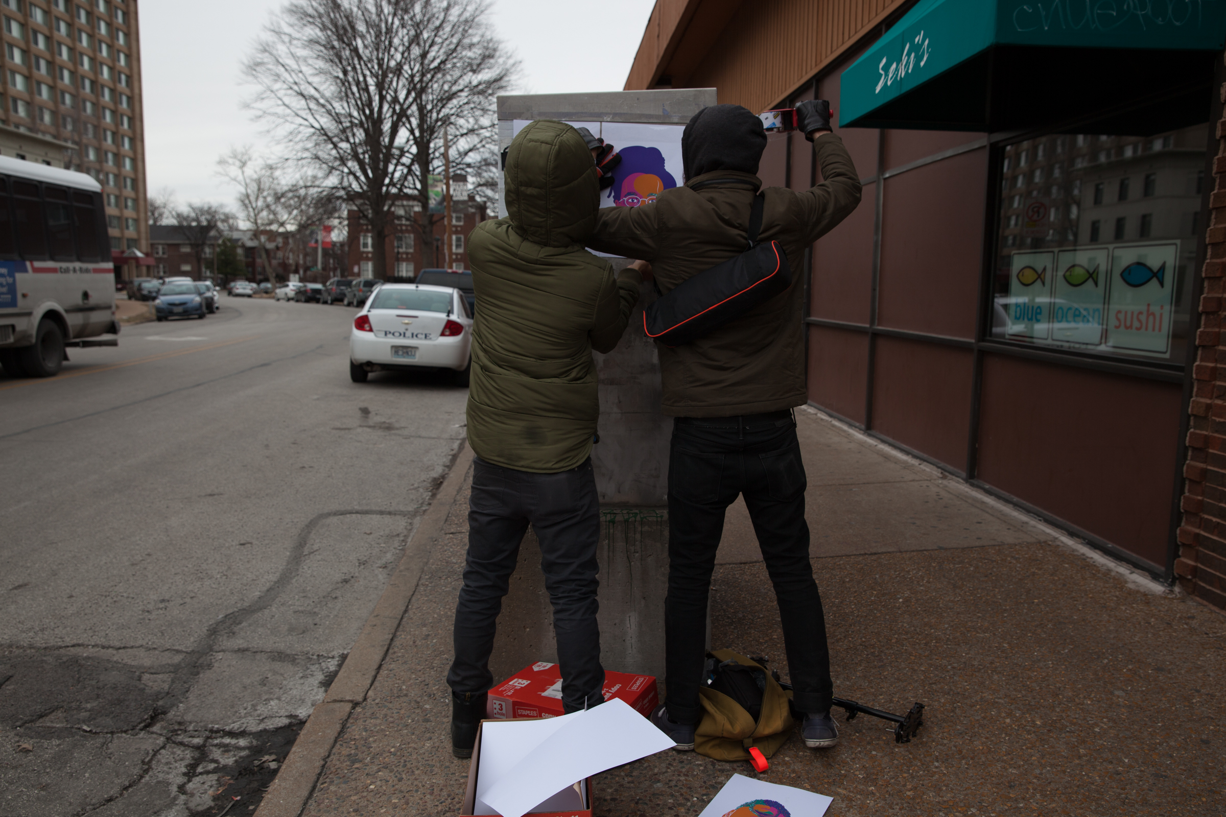 When the primary objective of a project is to simply help others, the outcome of such efforts are limitless. With an emphasis on the creative mind, Exist Magazine set out to document an unlikely collaboration between some of Saint Louis’ finest hip-hop innovators and artist / designer Gregory Davis in a public art project to promote a show at The Demo on February 26th. You might have noticed the many faces posters hung up around Saint Louis. A grid of four faces in orange, pink, purple, and teel hung up from Saint Louis Delmar Loop to South City Cherokee Street. The posters depict the cast for friday nights show starting with the headliner Mvstermind, along with Najii Person, J’Demul, and Anthony Lucius. Hanging up posters to promote a show is nothing new, but you may have noticed that these posters were a bit different. The posters were void of any information. The idea grew from a conversation about the abuse of information constantly bombarding the living world. The intention was to promote online, and have the public art to simply exist as art. Since the posters were hung they’ve taken on a life of their own. Fans have brought the project to greater heights by posting and tagging themselves in pictures via social media. Friday, February 26th will conclude the efforts to make a night that Saint Louis will never forget. The show starts at 9pm, and tickets are only $5 if you buy them in advance. We will see you there!