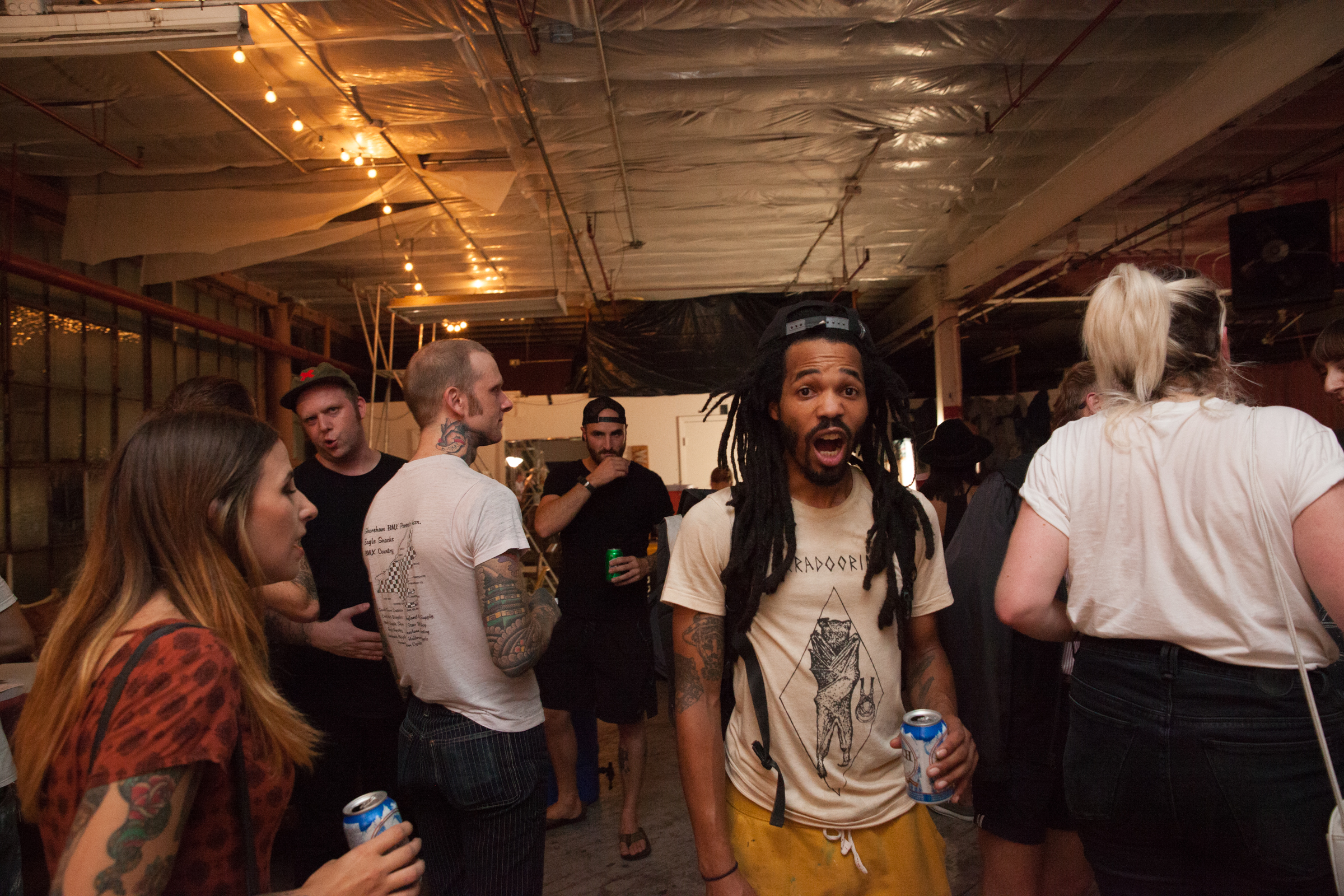 When we arrived a little after 6 we thought that surely once the sun went down that it would start to cool off, we were wrong. The Lemp Brewery is basically a human oven. From the roof to the floor everything absorbs and radiates heat. Add in a couple hundred people and you have the makings of a human shepherds pie. Ok that was kind of a gross analogy but you get the picture. It was hot. But the blood sweat and tears were all ignored once the beer was iced down and the sound guy showed up to pump out some tuneage. As the do it yourself-ers worked away at setting up their booths, people started rolling in to see what was happening. The word of mouth gets people there but most have no idea who, what, or even why it happens. But once they are there they are glad they came, familiar faces, new faces, but all faces that are genuinely happy to see you there.